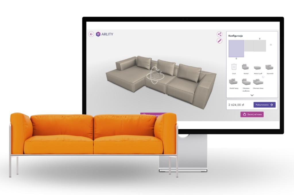 W projektach realizowanych przez Arlity modele są dodatkowo przygotowywane tak, aby mogły działać w konfiguratorach produktów i aplikacjach AR. Użytkownik może w czasie rzeczywistym zmieniać konfigurację produktu, a następnie zobaczyć go w swojej przestrzeni — na przykład w salonie, ogrodzie lub biurze.