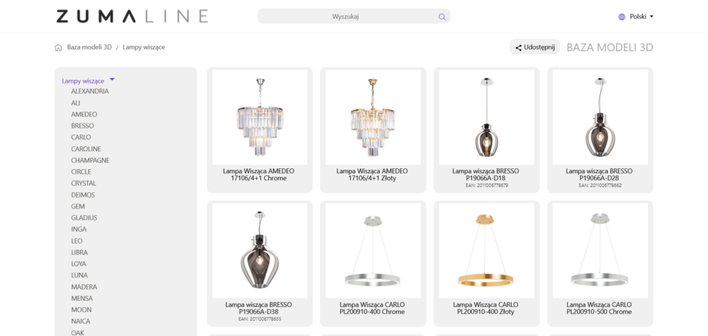 Modelowanie 3D jest również szeroko wykorzystywane przez producentów oświetlenia. Wiele modeli lamp występuje w różnych wariantach kolorystycznych, długościach, typach montażu czy konfiguracjach źródeł światła. Modele 3D pozwalają zaprezentować wszystkie te warianty w sposób przejrzysty i interaktywny.